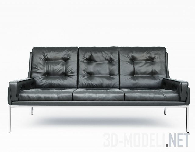 Трехместный диван Rare вневременной формы. Разработан дизайнером Roland Rainer в 60-е годы. Сиденье и спинка состоят из трех черных плоских мягких подушек. Отделка в черной коже и хромированная основа позволяет использовать диван в интерьере современного кабинета или в общественных помещениях.