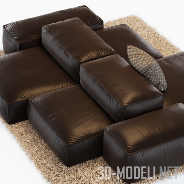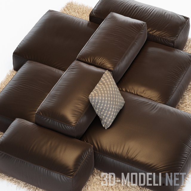 Современный модульный диван Extrasoft от бренда Living Divani, дизайн Piero Lissoni.Размер дивана: 300 x 250 x 63 см. Диван кожаный, шоколадного цвета, что хорошо сочетается с пушистым светлым ковром. Размер ковра 300 x 250 см.