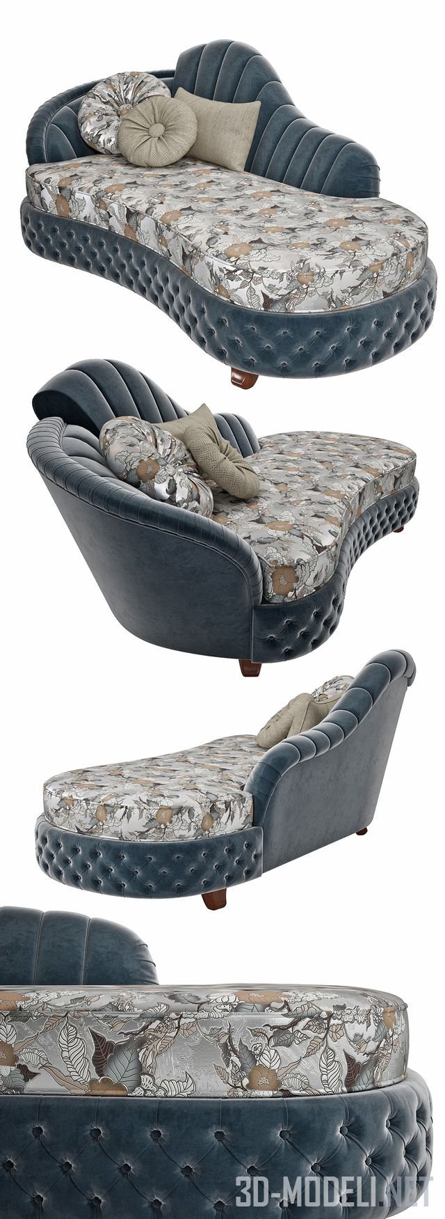 Роскошная оттоманка с обильным декором в виде простежки от итальянцев Bedding. Модель Sipario выполнена с фигурным ложем и фигурной спинкой. Плавные линии основы, деревянные лакированные ножки, цветочный принт оттенков приглушенной охры, сине-серого и белого на матрасе и декоративной подушке и серо-голубая кожа с прострочкой и втяжками на спинке и цоколе, создают объект мебельного искусства для интерьера в стиле арт-деко. Габарит: 216 х 115 х 97 см.