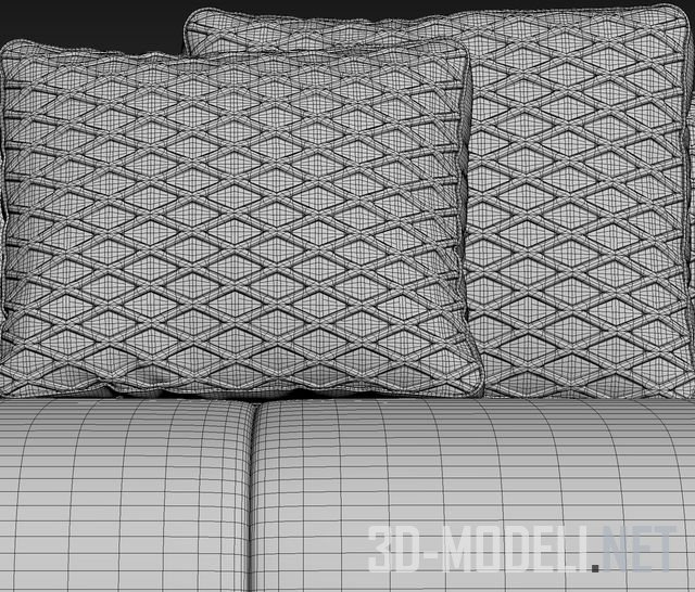 Современный уютный диван HUG от Cornelio Cappellini с охристого цвета обивкой. Декоративная нагрузка легла на обивку спинки с подлокотниками и на часть диванных подушек. Их поверхности декорированы рельефной решетчатой строчкой создающей паттерн из небольших ромбиков. Габарит дивана:300х104х73см.