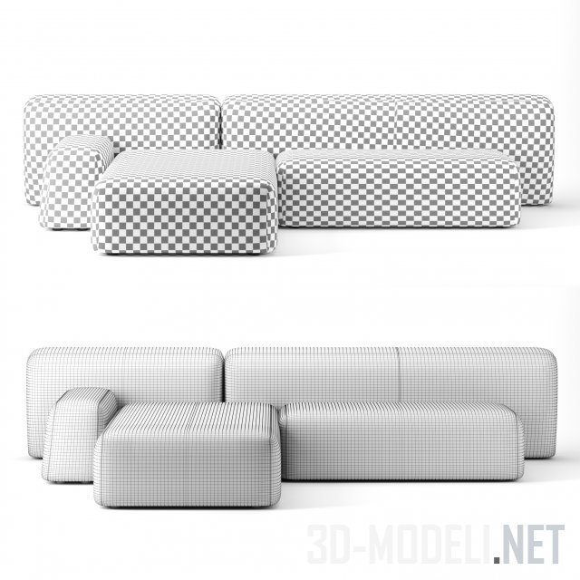 Модульный серый диван La Cividina Suiseki. Пять несколько ассиметричных блоков с плавными гранями составлены в эргономичную композицию в стиле «минимализм». Матовая серая поверхность дивана и «сглаженные» формы напоминают груду морской гальки. Габарит дивана: 320 х 175 х 68 см.