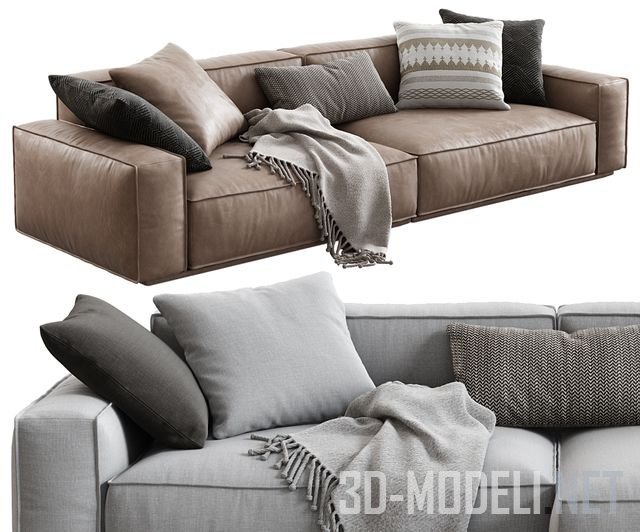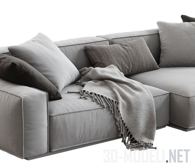 Большой мягкий диван Marechiaro XIII с невысокой спинкой в современном стиле. Производитель: Arflex. Множество декоративных подушек разного цвета и размера и свисающий с сиденья плед с бахромой создают дополнительное уютное впечатление. Диван представлен в трех видах обивки: серый и бежевый текстиль и кожа цвета какао с молоком. Размеры дивана: W3000 x D1030 x H710 мм.