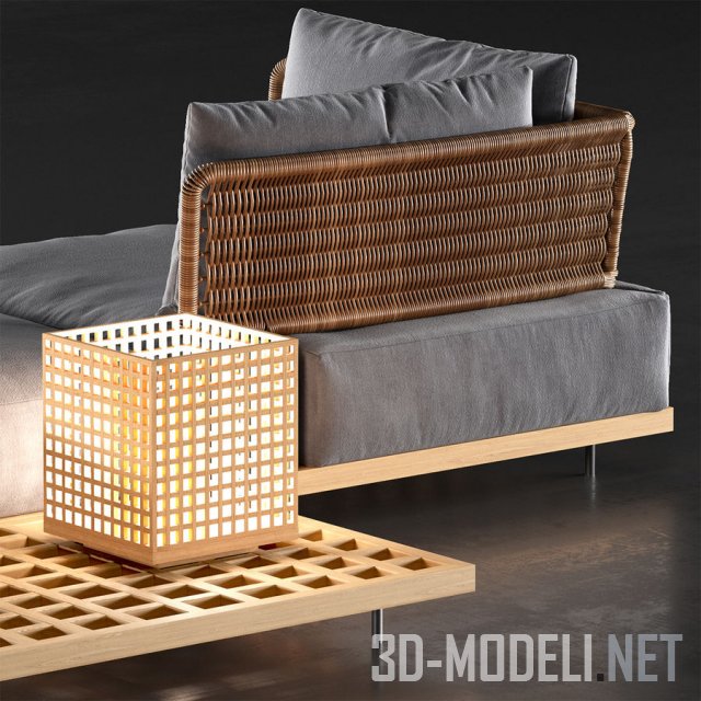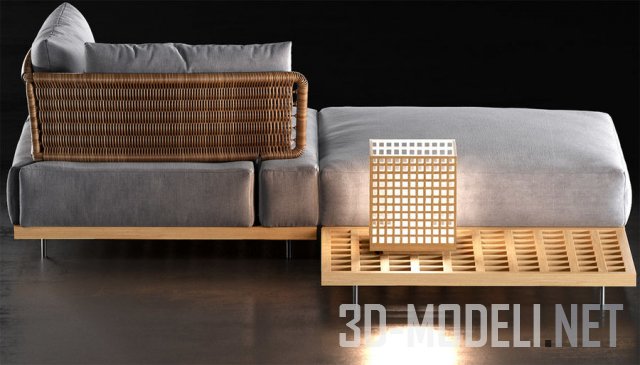 Предмет уличной мебели из коллекции Quadrado, удобный современный диван. Дизайн studio mk27, Marcio Kogan. Спинка и подлокотники из тикового дерева, матрас и мягкие обволакивающие подушки создают комфорт.