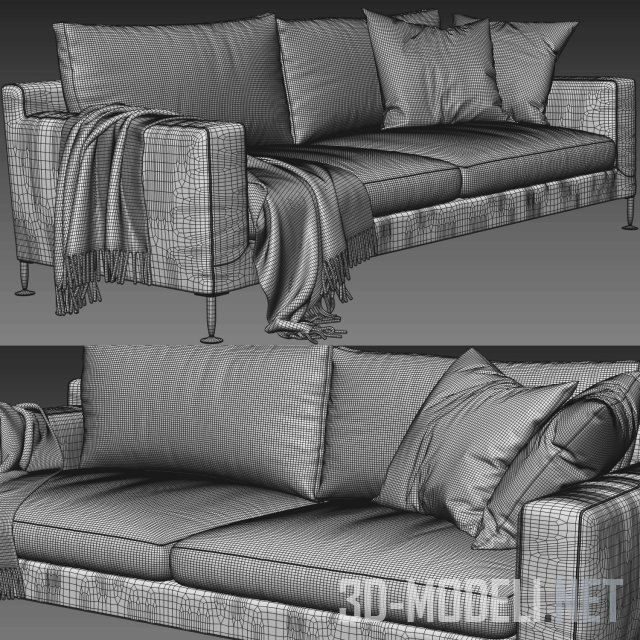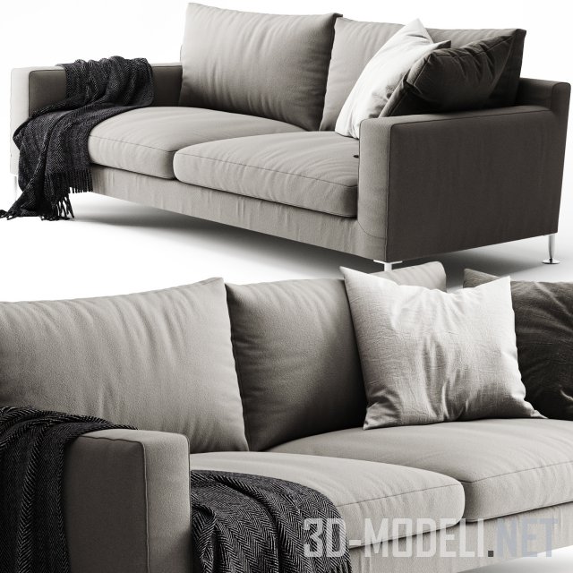 Современный лаконичный диван от производителя B&B Italia, серия Harry. Диван имеет металлические ножки, обивку из ткани. Дополнен подушками и пледом.
