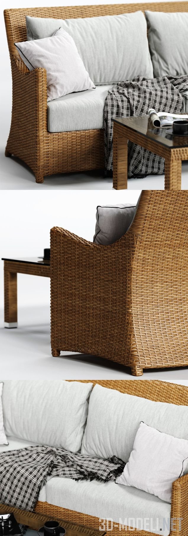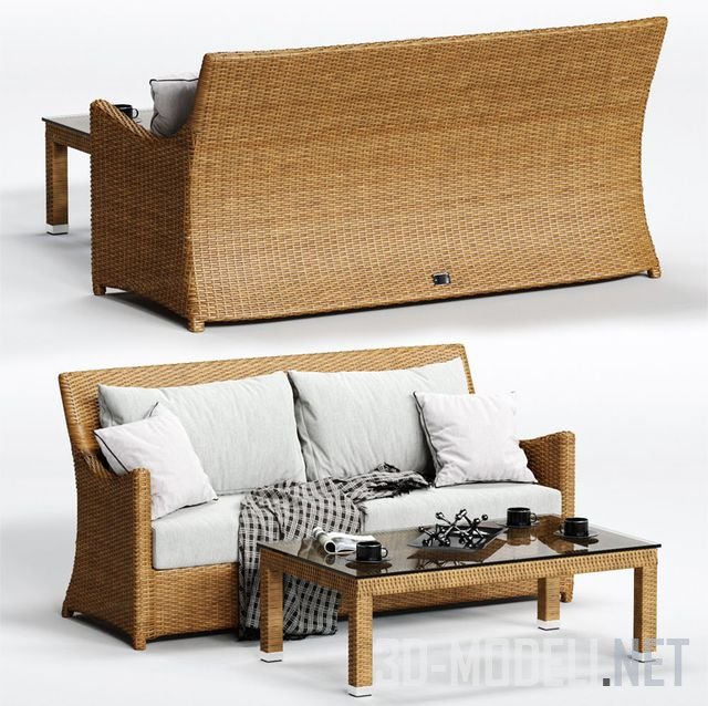 Набор плетеной мебели, отличный выбор для пространства террасы или веранды. Сет содержит диван Dolcefarniente SCAURI (размер 182 x 75 x 88 см) и столик Dolcefarniente PALINURO. Размеры стола: 120 x 70 x 41 см.