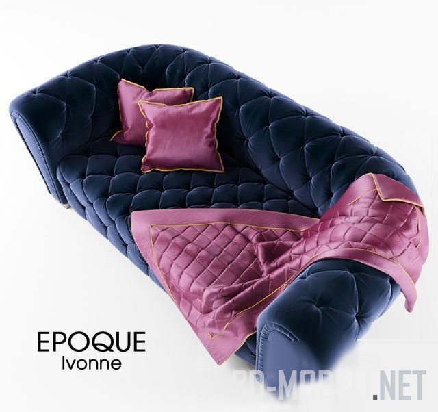 Гламурный диван EPOQUE Ivonne, в комплекте с декоративными аксессуарами – это диванные подушки и стеганый плед. Выбранная для них ткань идеально сочетается с обивкой дивана.