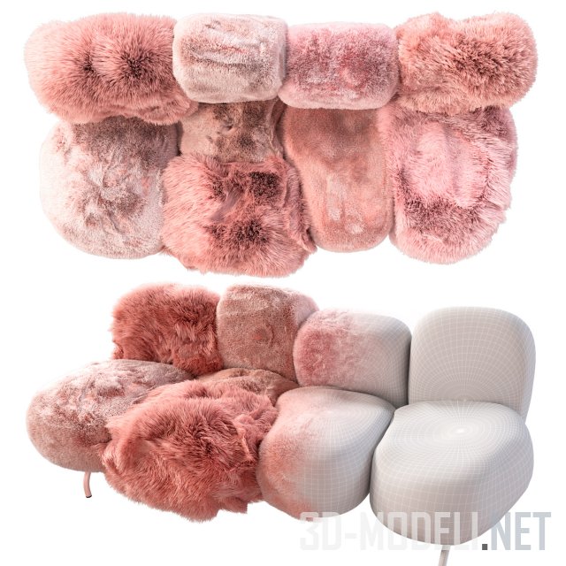 Девять текстурных подушек, напоминающих пуховки для нанесения пудры, прикрепленных к невидимой металлической ??раме в форме трубы, составляют основную конструкцию дивана. Диван очень удобный и мягкий, благодаря правильно подобранным, качественным материалам.