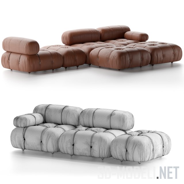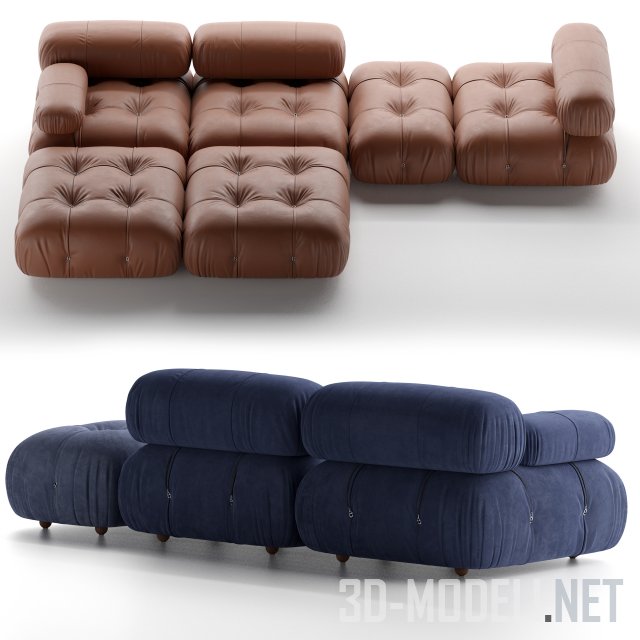 Модульный диван для динамичного и современного пространства, модель Camaleonda от фабрики B&B Italia. Диван представлен в двух вариантах обивки: коричневая кожа и темно-синий бархат.