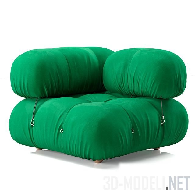 Модульный диван из коллекции Camaleonda, дизайн Mario Bellini. Система была разработана в 1970 году, и эти 50 лет не прошли бесследно. Это объект, который любят как поклонники дизайна, так и антиквары и декораторы интерьеров, и он наконец-то вернулся в производство. Щедрая полиуретановая обивка, формирующая характерный дизайн капитоне, осталась неизменной, по-прежнему изготавливается с использованием инновационной системы тросов, крючков и колец, созданной Беллини в 1970 году, которая определяет характерный внешний вид и модульность. Названия модулей в этой композиции: