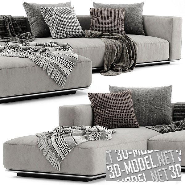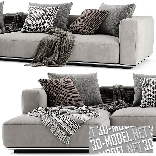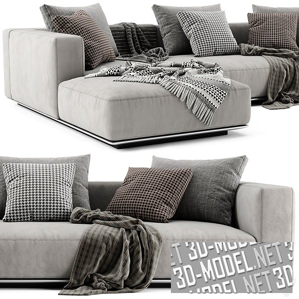 Диван Grandemare от Flexform с шезлонгом, подушками и пледом