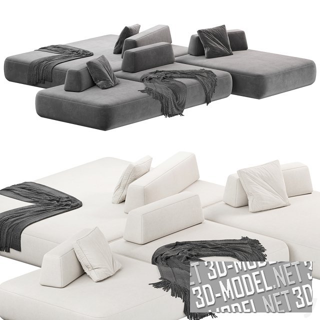 Современный диван BOCA TOMMY, состоящий из нескольких модулей и подушек-спинок. Три цветовых решения (белый, бежевый и серый) с легкостью интегрируются в интерьер любой комнаты. Размеры дивана: 9916.82 x 3938.34 x 891.5.