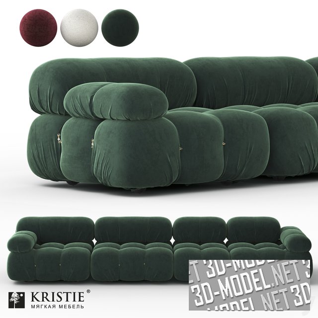 Большой современный модульный диван Asti от Kristie furniture. В комплекте приземистые секции двух типоразмеров и крайние секции с подлокотниками. Сиденья декорированы глубокими втяжками с золотистой фурнитурой и шнурами, создающими интересный декоративный эффект. Скругленные подушки подлокотников и спинки поддерживают этот дизайн. Представлено три варианта обивки: велюровая темно-зеленая, красно-коричневая темная, белая буклированая.