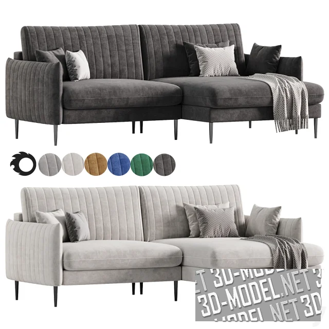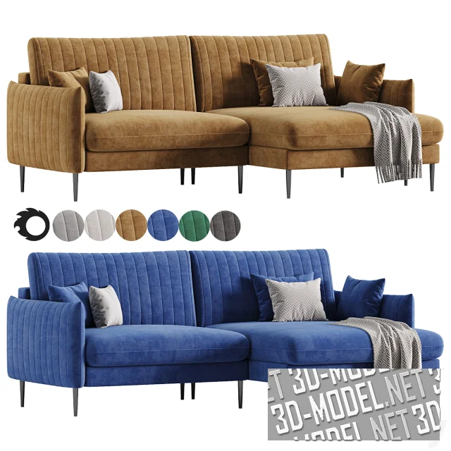 Двухсекционный современный диван Svaut от divan.ru. Одна из секций дивана - со стандартной глубиной сиденья. Вторая с увеличенной глубиной посадки. Прямая спинка и подлокотники в виде прямоугольных подушек декорированы вертикальными простроченными полосками. На диван наброшен серый с белым плед и декоративные подушки в серо-белых чехлах и в чехлах цвета обивки. Тонкие ножки дивана темно-серого цвета. Обивка представлена из велюра шести цветов: светло-серый, белый, охристый, синий, зеленый, темно-серый.