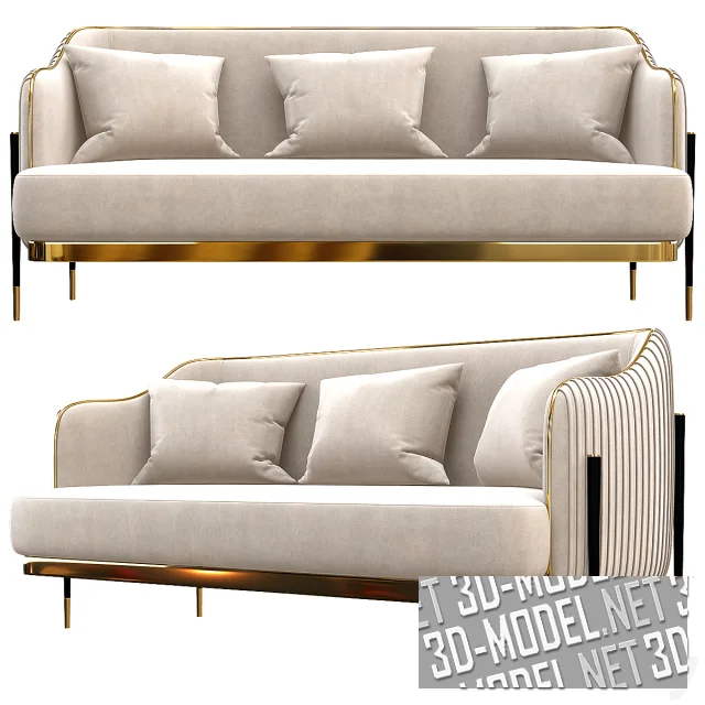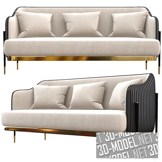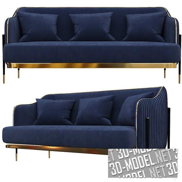 Трехместный прямой нераскладной диван в строгом современном стиле - модель Oxford от Capital collection. Корпус с золотистым цоколем установлен на четырех тонких черных ножках с золотистыми наконечниками, продолжающихся выше сиденья, визуально «поддерживающих» корпус. Фигурные подлокотники и прямая спинка выполнены в виде цельной гнутой детали, декорированной золотистым молдингом по кромке и плиссерованой обивкой по наружной плоскости. Диван дополнен тремя свободнолежащими квадратными подушками из материала обивки. Обивка представлена в нескольих вариантах бархата: бордовый, «слоновая кость», «слоновая кость» с черной плиссерованной плоскостью, темно синий.