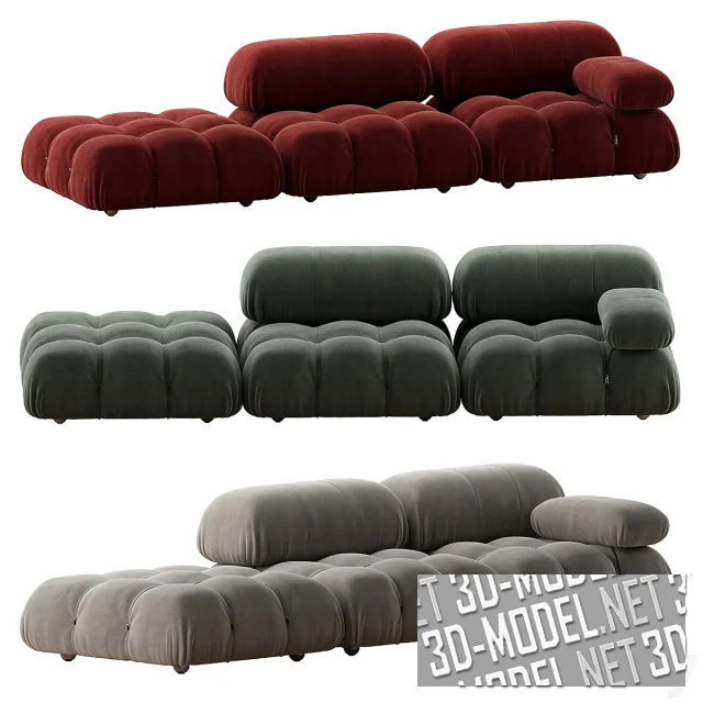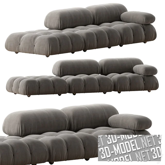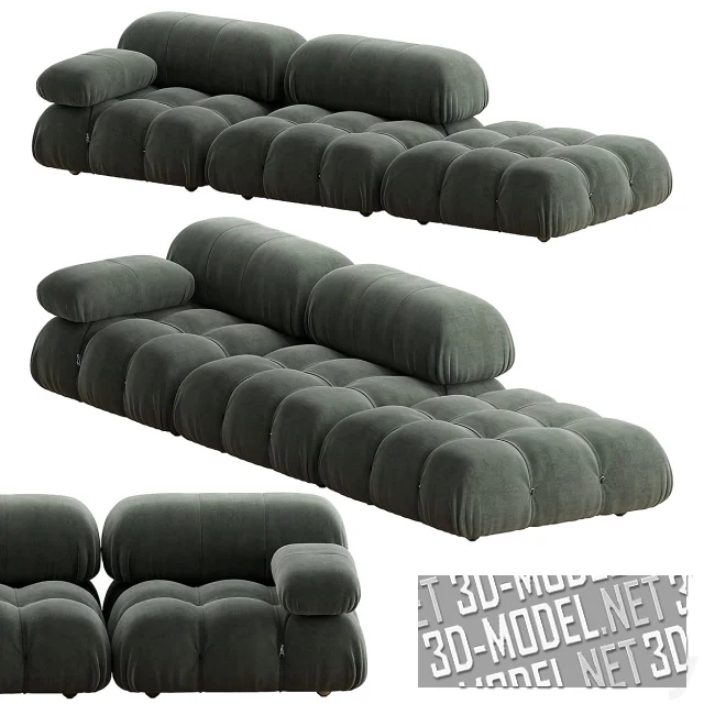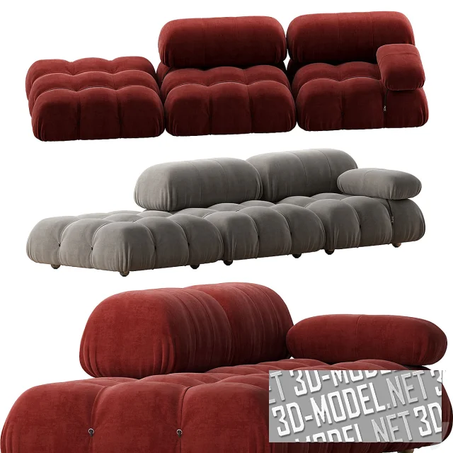 Современный модульный диван Camaleonda от B&B Italia (дизайнер: Mario Bellini). Система с низкой посадкой включает в себя несколько модулей габаритом 90х90см (квадратный пуф, квадратный пуф с невысокой спинкой, квадратный пуф с невысокой спинкой и низким мягким прямоугольным подлокотником), позволяющих сконфигурировать любую диванную конструкцию.