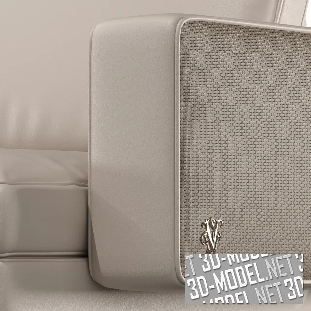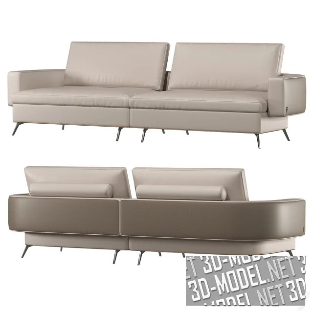 Современный диван Rhapsody от Visionnaire. Гладкая кожаная обивка сливочного цвета контрастирует с металлическими ножками. Диван состоит из двух симметричных зеркальных секций. Высокая прямоугольная подушка спинки опирается на горизонтальную толстую опору спинки, переходящую в подлокотник и на горизонтальный мягкий валик. Наружная плоскость опоры спинки представлена в двух вариантах: с мелким простроченным орнаментом, с кожей более темного оттенка или декорирована частой вертикальной прострочкой (cannette). Габарит дивана: 287х100х88см.