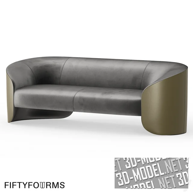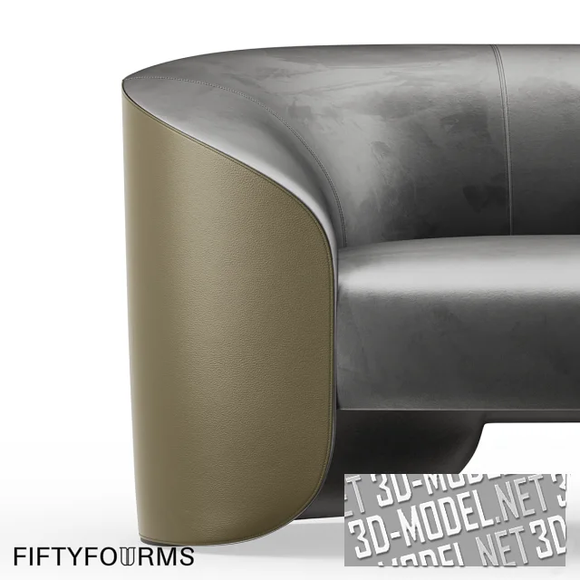 Строгий минималистичный современный диван Vita от FIFTYFOURMS Design, со скругленным силуэтом и двухцветной обивкой. Огибающая наружная плоскость невысокой спинки, переходящей в подлокотники, спускается до пола, маскируя мощные опоры. Эта плоскость обита кожей (доступна в трех цветах: серая, белая, оливковая). Внутренняя часть спинки сформирована в покатую скругленную плоскость с обивкой из матового велюра (представлено пять вариантов: графитово-черная, оливковая, серая, белая, бронзово-коричневая). Сиденье, разделенное прострочкой, тоже обито велюром.