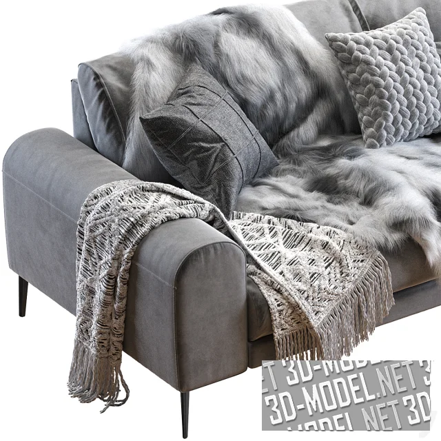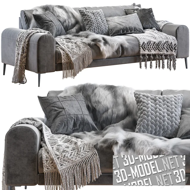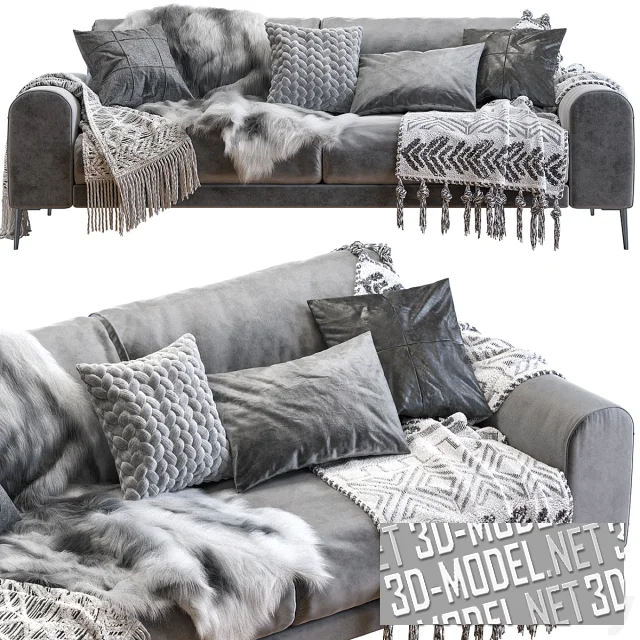 Современный диван Joy, произведенный финской компанией Pohjanmaan. Обит мягкой тканью серого цвета. Тонкие изящные ножки, подлокотники и спинка образуют универсальный привлекательный дизайн. Подушки, пледы с кистями и шкура медведя гармонично дополняют диван. Размеры Joy: ширина 228, высота 81, глубина 101 см.