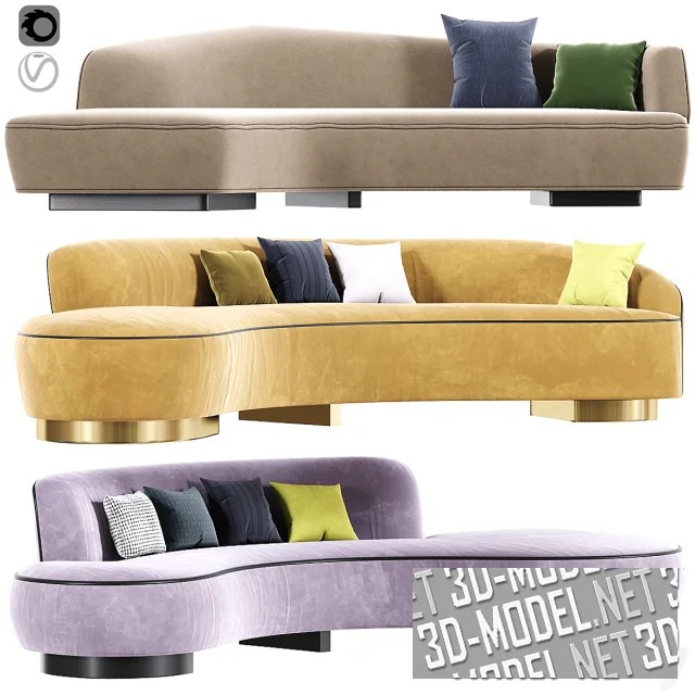 Предусмотрены разные конфигурации: Serpentine и Freeform Curved Sofa with Arm имеют габариты 340 х 155 х 76 см при высоте сиденья 43 см; вариант Korduda 340 х 135 х 84 см. Модель эффектно работает в просторных гостиных, холлах отелей, галереях и креативных офисах, где нужен выразительный центр композиции.