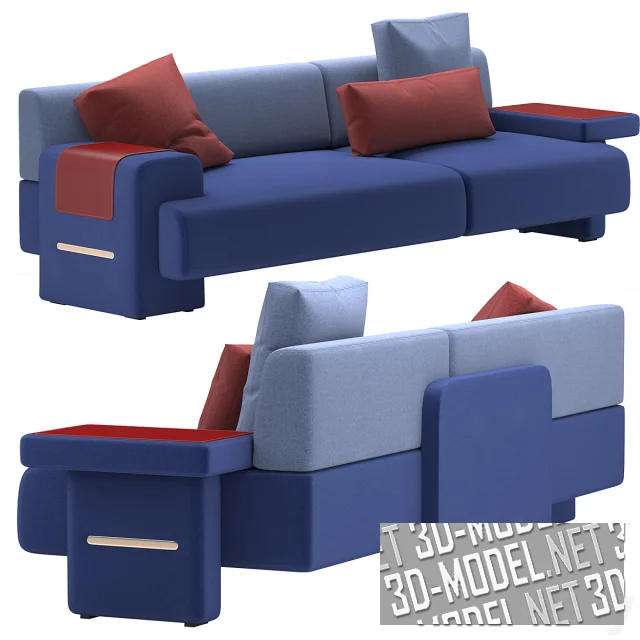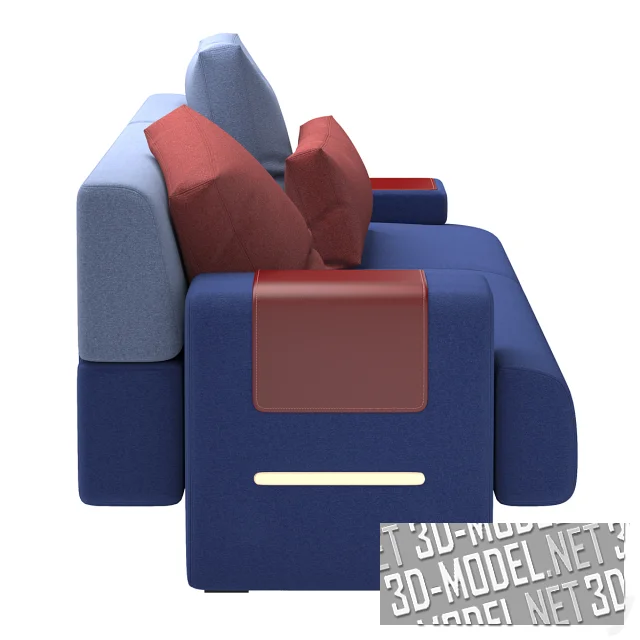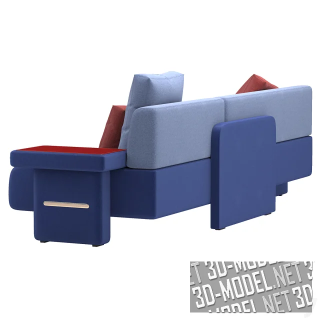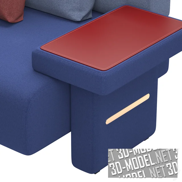Современный стильный диван Haymann. Сиденье и подлокотники выполнены в синем цвете обивки, а спинка в голубом. Красные подушки привносят в дизайн яркий контраст. Габариты дивана: 2750 x 1090 x 760 мм. Haymann станет практичным и стильным элементом в любом интерьере.
