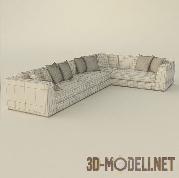 3D модель углового кожаного дивана от производителя мебели Formitalia. Натуральная кожа в качестве отделки смотрится очень презентабельно, диван декорирован подушками с оригинальными принтами.