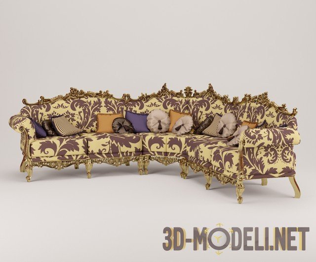 3d модель роскошного углового дивана, артикул 12401, производство Modenese Gastone, Италия. Как и все жемчужины коллекции Casanova, диван поражает мастерством исполнения и впечатляющим классическим дизайном. Обилие декоративных элементов, тонкая резьба, богатая обивка сделают эту модель центром внимания в интерьере.