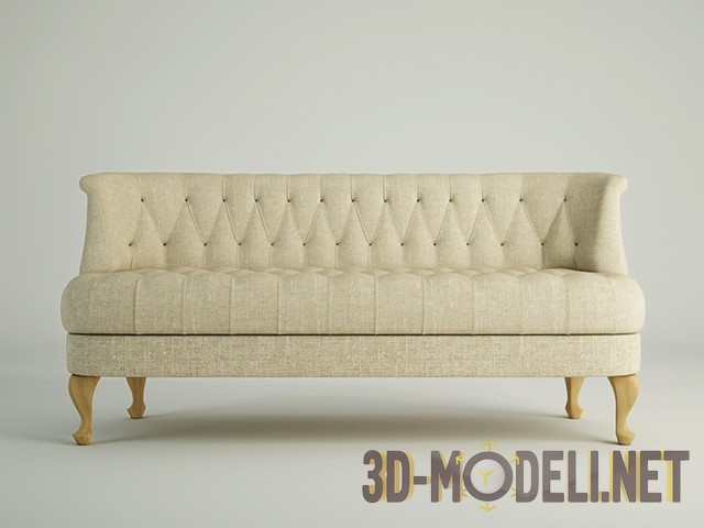 3D модель трехместного дивана «Olympia» от известной фабрики Marko Kraus. Диван так и просится в классический интерьер спальни или столовой. у него слегка изогнутая спинка, чуть заходящая на боковины, фигурные изогнутые ножки, выполненные из светлого дерева. Диван обтянут светло-бежевой тканью с мягкими защипами в торце сиденья и простежкой капитоне на спинке и на сиденье.