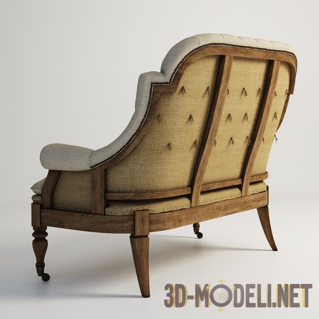 3d-модель дивана KEMPER DECONSTRUCTED 105.006-F01 от производителя мебели Gramercy Home. Диван является ярким представителем стиля deconstructed (разобранный). Это мебель, с умышленно «вскрытыми», без отделки, участками. В данном диване, реплики американской модели ХIХ в., открыта задняя сторона спинки. Видны внутренности, рама, элементы обивки. Спереди это оригинальный диван с высокой мягкой спинкой, с простежкой капитоне и мягкими валиками подлокотников, с декоративными гвоздиками. Цельная подушка мягкого сиденья обеспечит комфорт. Передние ножки точеные, заканчивающиеся латунными рояльными роликами, для облегчения перемещения дивана. Задние ножки слегка изогнуты назад, квадратного сечения. Отделка мягких частей имитирует натуральное льняное полотно. Габариты дивана: длина 158 см, ширина 84 см, высота 116 см.