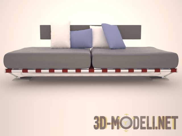 Лазерная резка применялась для выполнения хромированных стальных пластин, которые собраны без сварки, благодаря обработанным на ЧПУ элементам. В результате удалось сформировать зооморфную конструкцию, которая поддерживает подушки сиденья, а с помощью ручной работы часть ее спрятана за полоски кожи. Такой диван представляет собой целую систему, которая состоит из диванов различных размеров (двухместный и трехместный диваны, диван-кровать), кресло и пуфик, с подушками различных форм и отделок. Формат модели: 3D Studio Max 2012, рендер VRay 2.30. Текстуры и материалы в архиве.