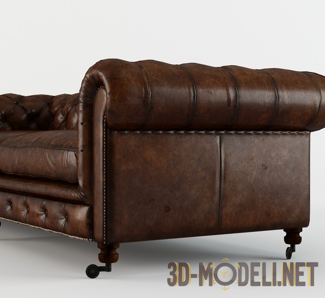 Высококачественная 3D-модель большого дивана, обтянутого хорошей коричневой кожей. Диван имеет чуть скругленную спинку, отделанную декоративной простежкой капитоне и такие же подлокотники на одном уровне со спинкой. Укомплектован колесиками на ножках. Будет хорошо смотреться в дизайне классического интерьера.