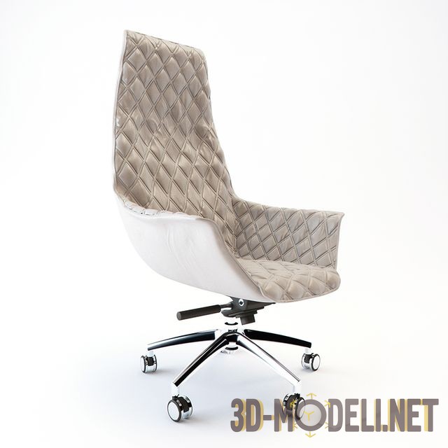 Роскошное кабинетное кресло с декоративной прострочкой в виде ромбов. Обивка выполнена из кожи жемчужного цвета. Регулируемое сиденье составляет единое целое с подлокотниками и спинкой. Пятилучевая крестовина изготовлена из хромированного металла, оснащена роликами.