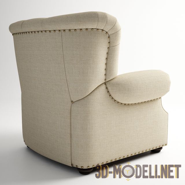 Кресло ROCKFORD RECLINER, арт. 602.011, от бренда Gramercy Home. Это массивное классическое кресло с втяжками капитоне на спинке и завёрнутыми наружу подушками подлокотников. Швы и складочки вписаны в комплекс декоративных элементов кресла. Декоративные гвоздики рядами набиты по периметру низа кресла и под подлокотниками. Светлая обивка – натуральное льняное полотно.
