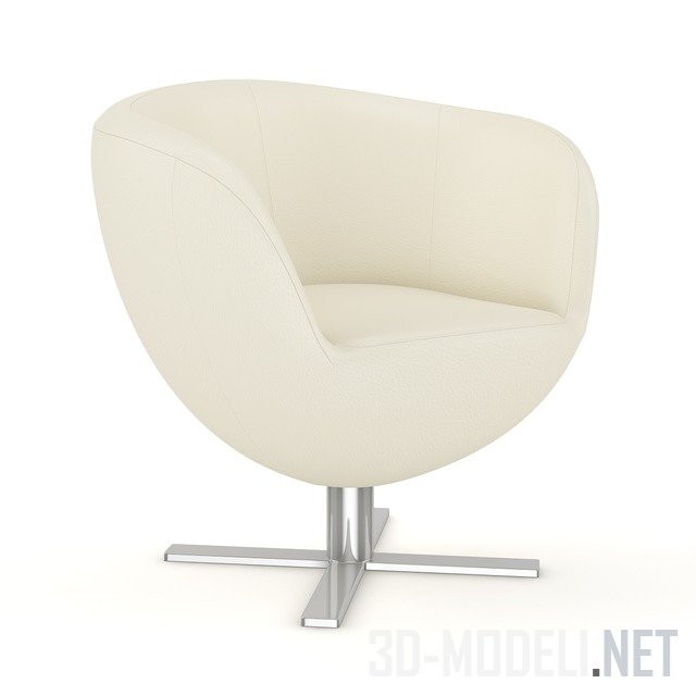 Низенькое белое (и бежевое в комплектет) мягкое кресло, с пухлой спинкой, переходящей в одно целое с подлокотниками. Кресло стоит на короткой двойной цилиндрической ноге, оканчивающейся большим серебристым пятаком. Реалистичная 3D модель с текстурами.