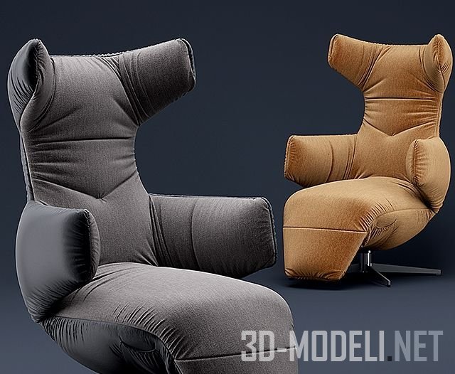 Современное нестандартное кресло SAPHIRA от Leolux. Конструкция кресла напоминает простейшее тихоходку. «Лапы» составляют подлокотники и элементы, огибающие голову сидящего. Мягкий продолговатый корпус спускается к самому низу, обеспечивая комфортную посадку. Все элементы регулируемые, что позволяет подогнать подлокотники, спинку, подголовник и подставку для ног под любой рост и комплекцию сидящего. Представлены несколько вариантов обивок с разной текстурой и оттенками: оливковый с серым меланжем, охристый и серый с черным.
