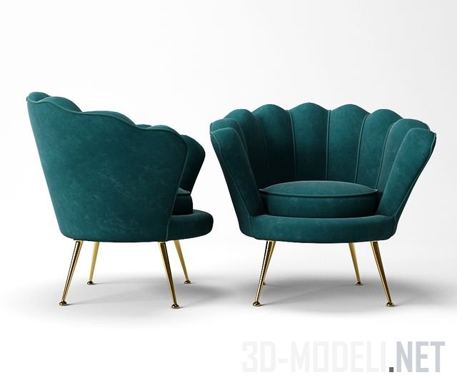 Мягкое кресло в форме ракушки, модель Trapezium от Eichholtz. Такое кресло станет необычным украшением интерьера комнаты. Сочетание бирюзового с золотистым - это классика, которая всегда смотрится самостоятельно, ярко и изысканно.