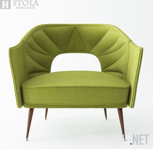 Современное оригинальное кресло в скандинавском стиле, модель Stola Brabbu. Кресло отличается складчатой велюровой обивкой светло-зеленого цвета и высокими ножками из состаренной латуни.