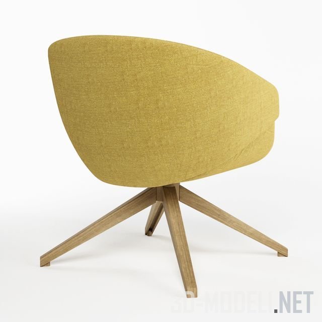 Современное мягкое кресло SP01 ANITA, Кресло горчичного цвета, с невысокой спинкой, переходящей в подлокотники и крестовиной из светлого дерева. Ширина кресла 700 мм, глубина 680 мм, высота 700 мм. Высота сиденья составляет 420 мм.
