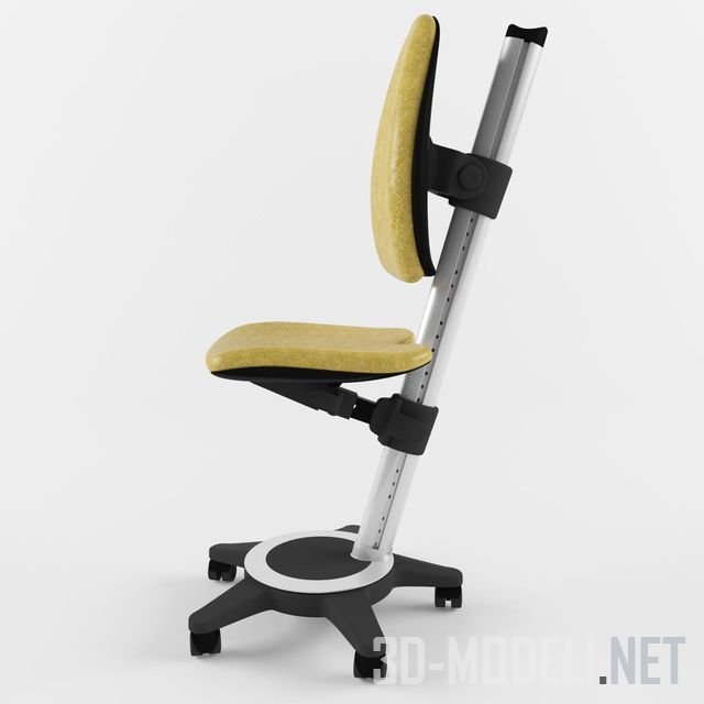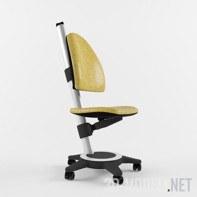 Детское регулируемое кресло желтого цвета с высокой спинкой и на треноге, модель Maximo 15 moll. Материалы и текстуры в архиве.