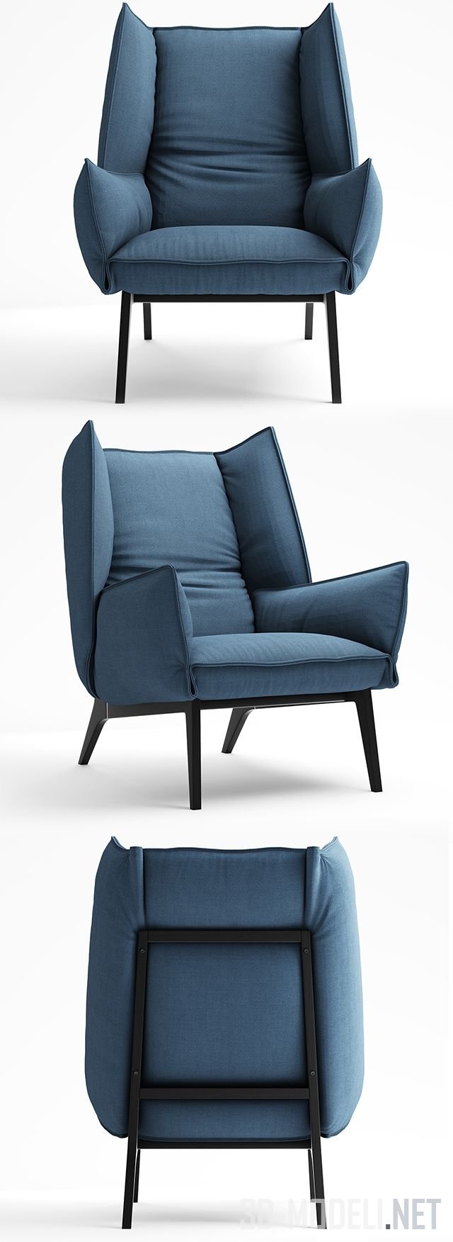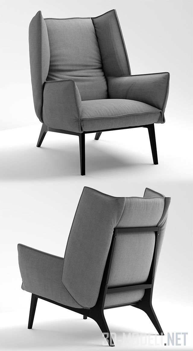 Современное кресло Toa, основа из массива ясеня, спинка, подлокотники и сиденье с полиуретановым наполнением. Дизайнер: Remi Bouhaniche, производитель: Ligne Roset. Обивка кресла показана серая или синяя.