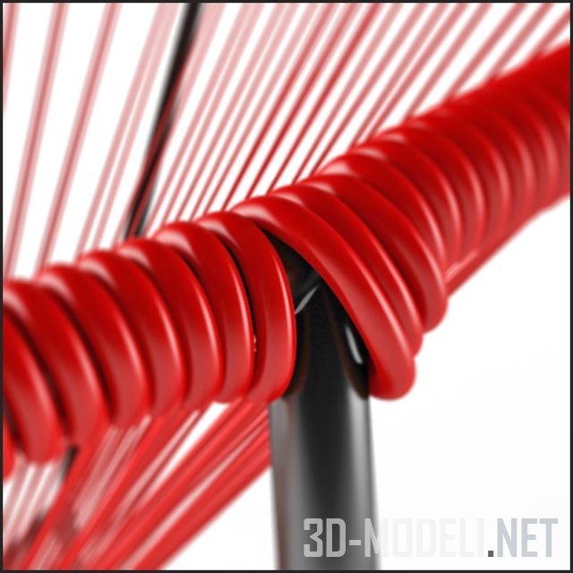 Подходящее кресло для интерьера уличного кафе или открытой веранды, 100% ручная работа. Модель Acapulco (арт. ND03) от производителя Nard Decor (Россия). Кресло состоит из черного металлического каркаса и красного ПВХ-шнура. Размер кресла (ВхШхГ): 74 х 92 х 84 см.