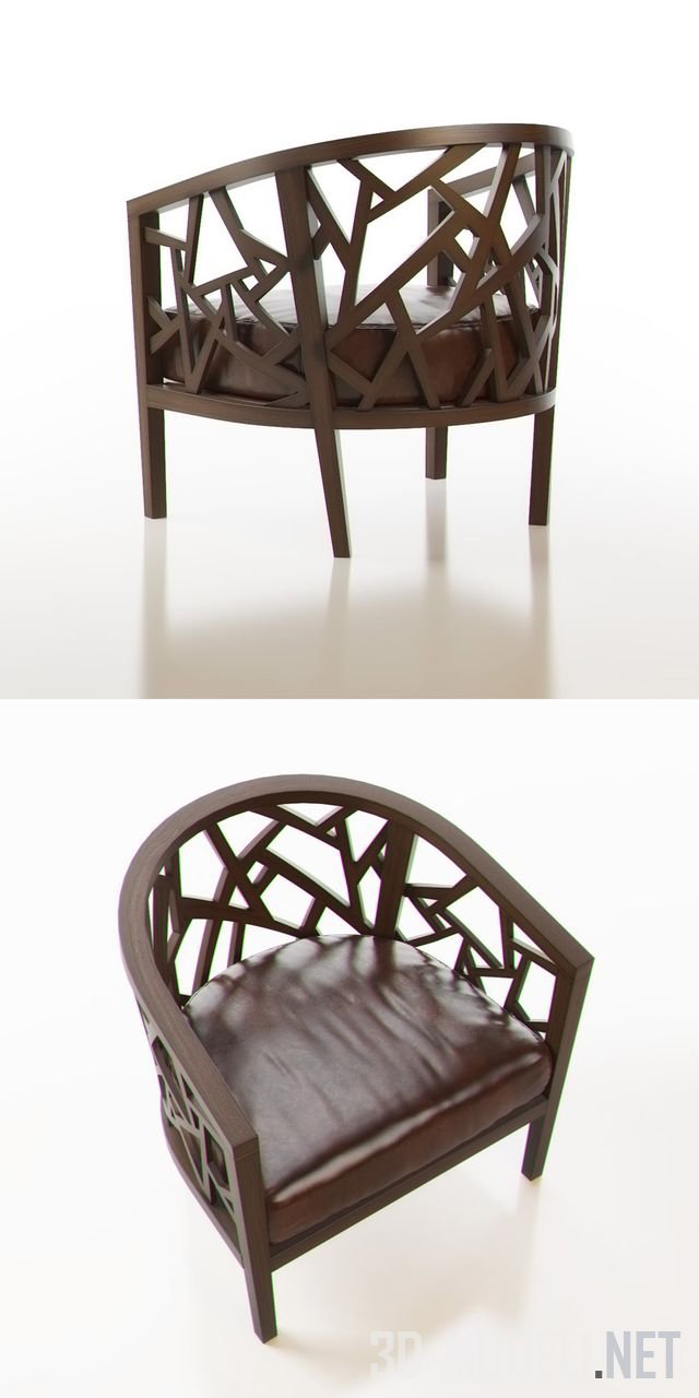 Деревянное кресло коричневого цвета, модель Ankara Truffle Frame от Crate&Barrel. Кресло с интересной резной спинкой и мягким сиденьем, обтянутым кожей шоколадного цвета.