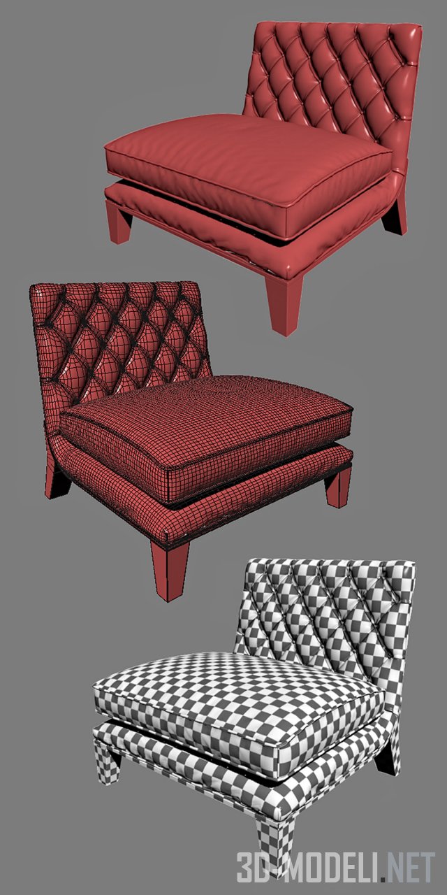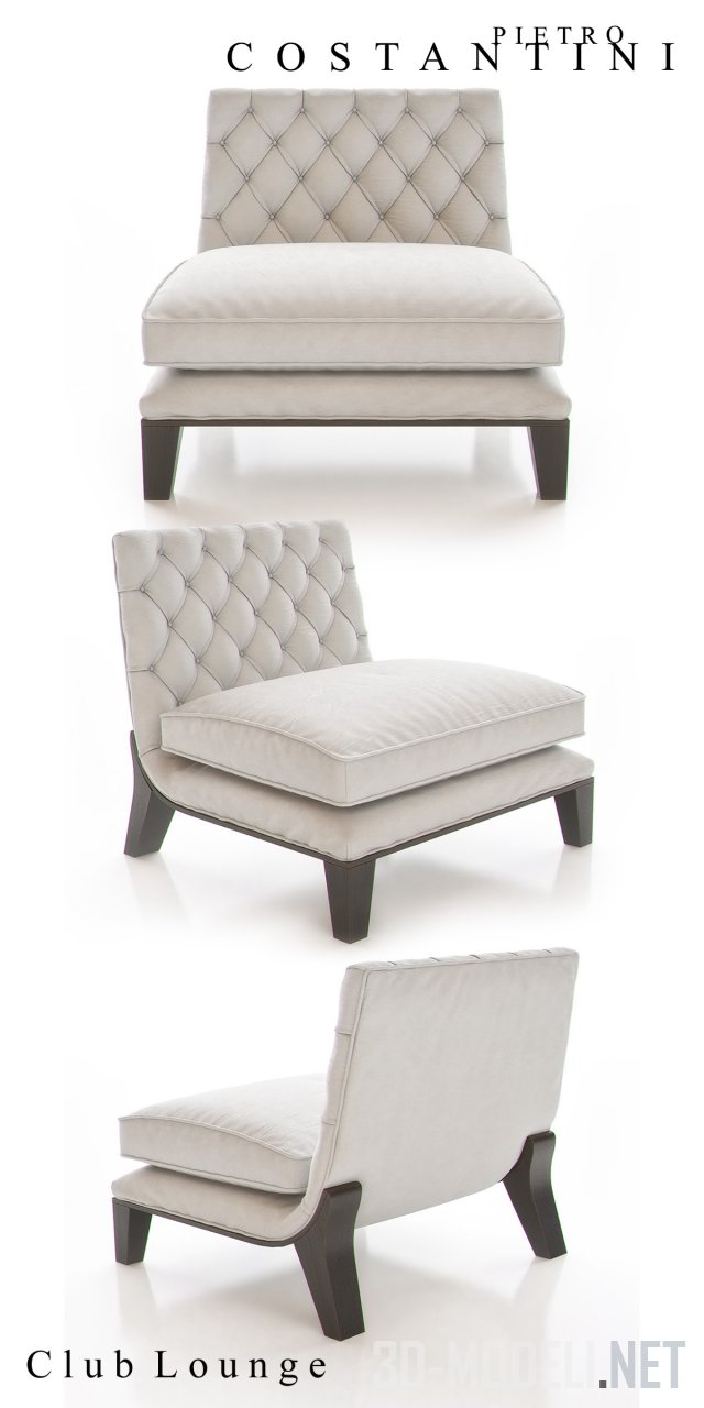 Итальянское кресло Constantini Pietro Clab, без подлокотников, на невысоких четырехгранных ножках из темного дерева. Ножки идеально гармонируют со светлой обивкой и каретной простежкой спинки.