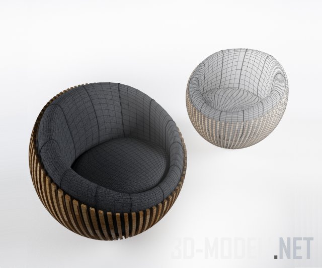 Эргономичное круглое кресло ATTRACTIVE, выглядит, словно половинка ореха с мягкой сердцевиной. Реалистичная модель с текстурами в архиве.