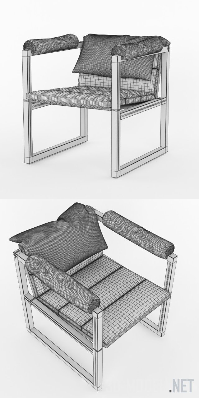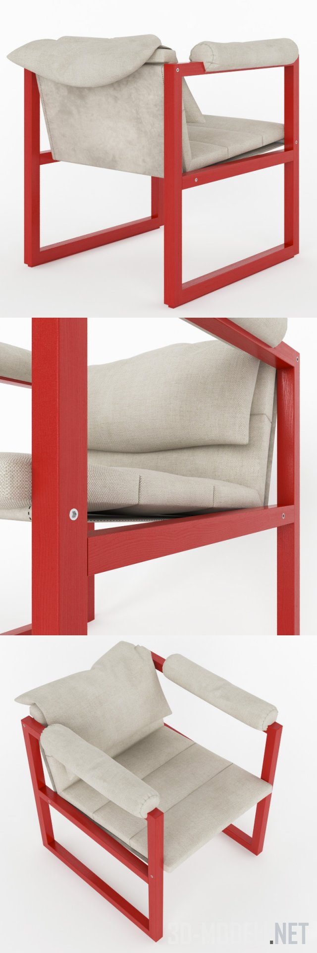 Современное кресло Muskat Sessel, отлично подойдет для веранды или летней беседки. Кресло с красными деревянными ножками в виде прямоугольных рамок, переходящих в подлокотники и матерчатыми мягкими сиденьем и спинкой светло-бежевого цвета.