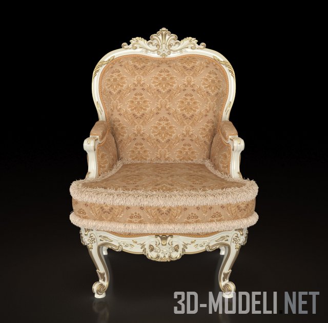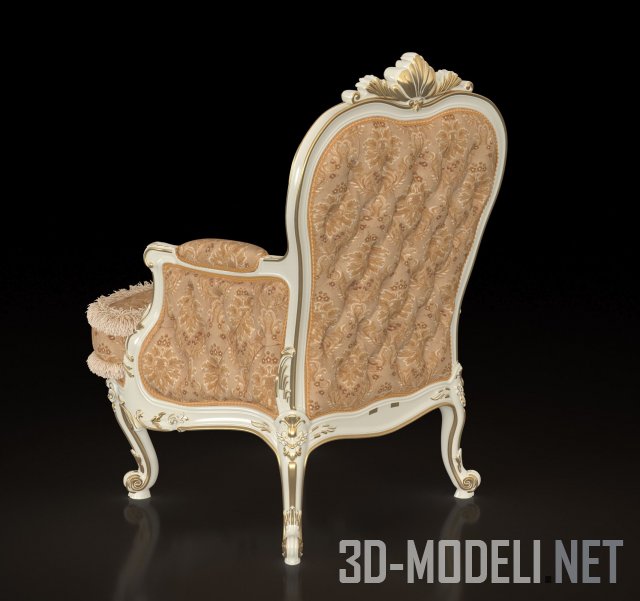 Итальянское кресло в классическом стиле, изящный шедевр от фабрики Modenese Gastone. Кресло имеет резные ножки цвета слоновой кости, которые украшены позолотой, что прекрасно сочетается с обивкой. С внешней стороны кресло декорировано утяжкой капитоне.