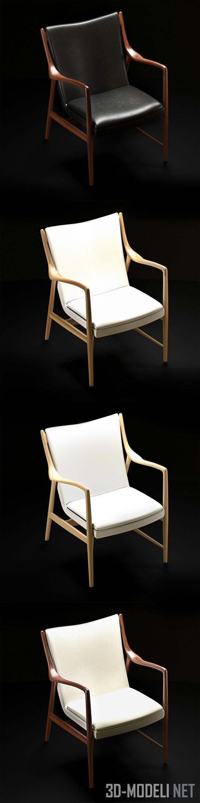 Finn Juhl) разработал модель 45 в 1945 году. Он был одним из первых, кто нарушил традиции, освободив сиденье и спинку от рамы. В результате получилось очень элегантное и удобное кресло, выразительность которого очень характерна для стиля Finn Juhl. Модель 45 отличается высококачественной обработкой тщательно подобранной древесины - дуба, ореха или тика. Он может быть обтянут кожей или тканью.