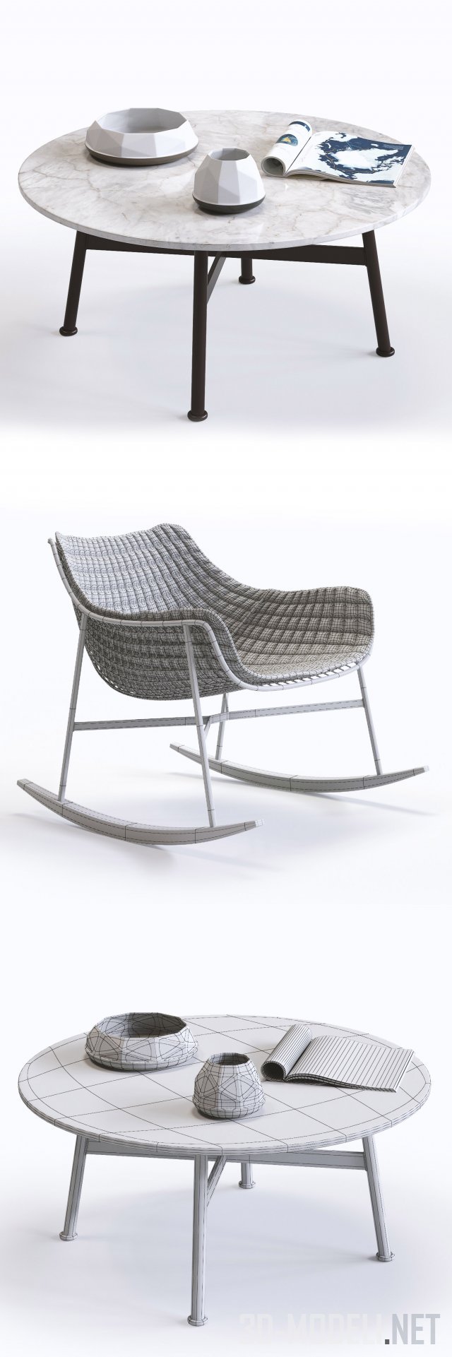 Невероятно красивое и удобное кресло-качалка и журнальный столик от бренда Varaschin серии SUMMERSET позволяют создать уютное и комфортное место отдыха в интерьере, на террасе или в саду. Размер кресла: 86 x 74 x 72.5 см, размер стола 80 x 80 x 37 см.