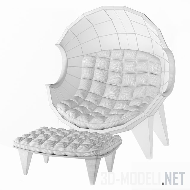 Кресло со стильным сегментированным сидением, модель Segment от дизайнера Sae-rom Yoon. Кресло имитирует защитную природу материнской утробы, и представляет собой отличное укрытие для тела и разума, напоминающее раковину. Сиденье в форме чаши, сегментированные части, подставка для ног и гибкие тафтинговые подушки имеют эргономичную структуру, позволяющую удерживать тело в нескольких положениях. Кресло идеально подходит для чтения книги или дневного сна.