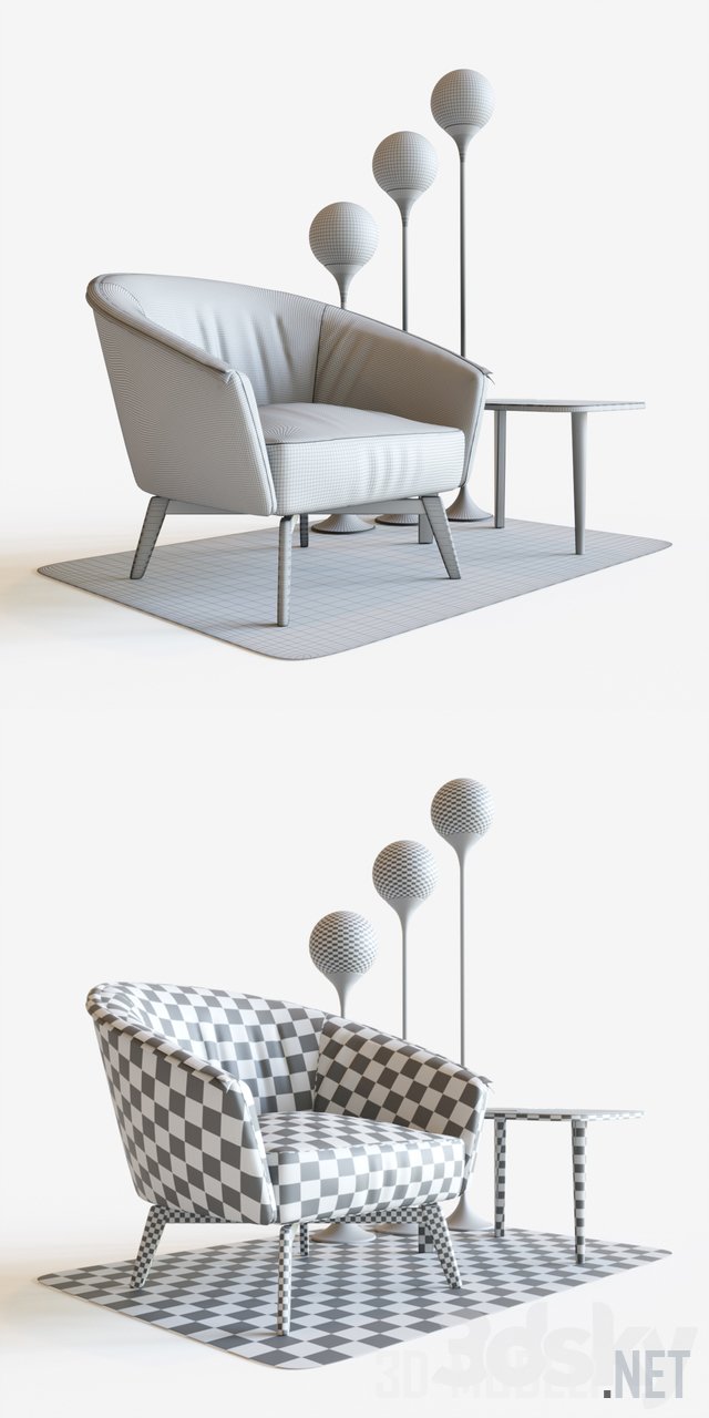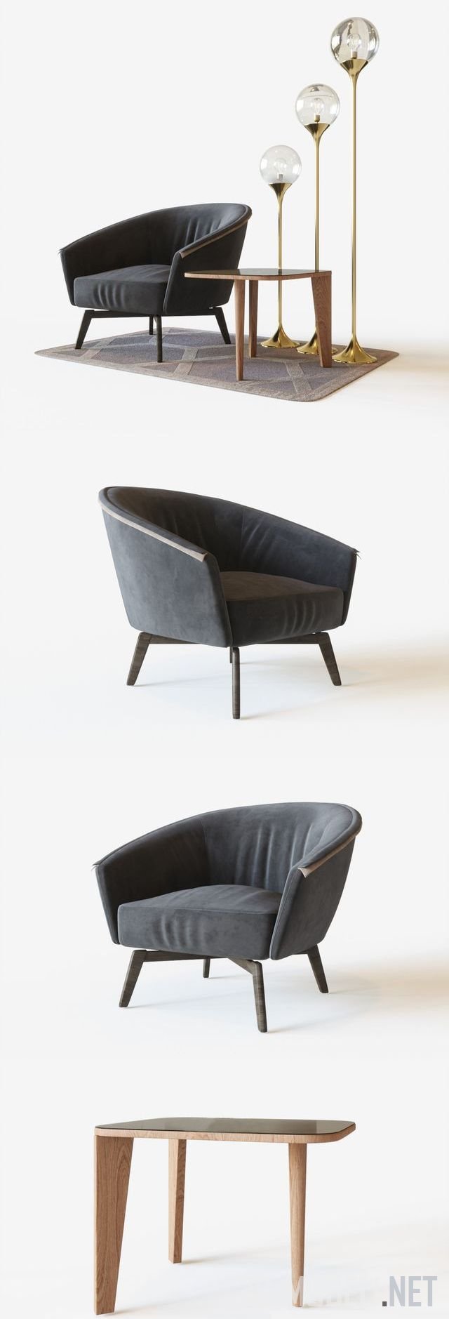 Несколько предметов для современной обстановки от итальянского бренда Bonaldo, дизайн Mauro Lipparini. В центре внимания кресло Bruno (размер 83 х 82 х 75 см). Ножки деревянные обивка текстиль. Кофейный стол и торшер в трех вариантах высоты дополняют набор.