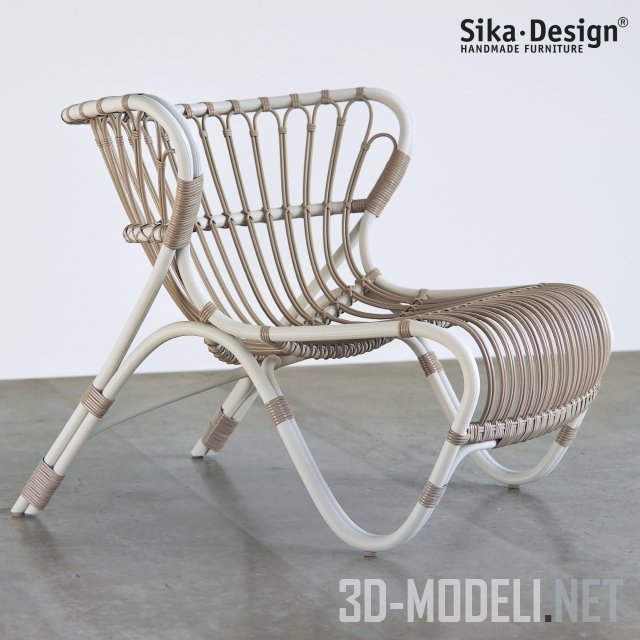 Современное плетеное кресло Fox Chair от Sika Design. Кресло выполнено из искусственного ротанга белого и светло-коричневого цвета. Габарит кресла 80 х 64 х 80 см, высота сиденья 25 см.